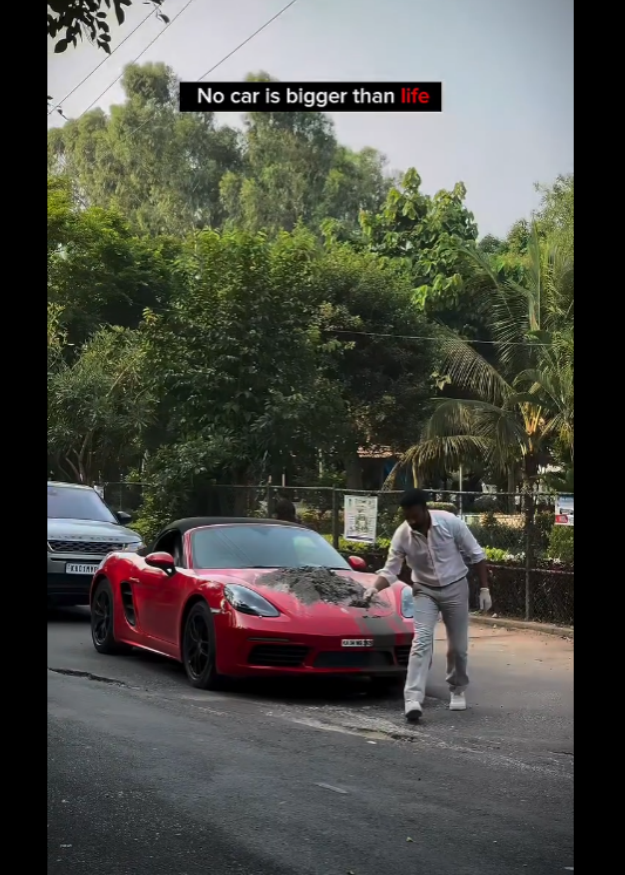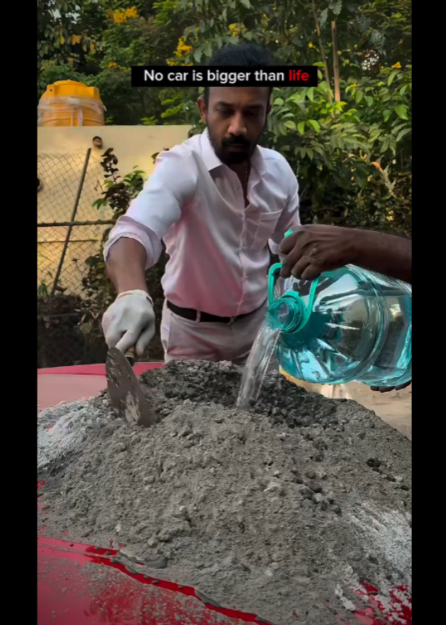 영상의 주인공은 인도 디테일링 업체 H1 카 디테일링(H1 Car Detailing) 대표 아킬 야다브다. 그는 도로 위 포트홀을 발견하자 자신의 포르쉐 박스터를 멈춘 뒤 프렁크에서 장비를 꺼내 현장에서 보수 작업을 시작했다. 그리고 많은 자동차 애호가들이 경악할 만한 행동을 이어갔다. 붉은색의 포르쉐 보닛 위에 시멘트와 골재를 그대로 쏟아붓고, 물을 더해 흙손으로 콘크리트를 직접 혼합한 것이다.