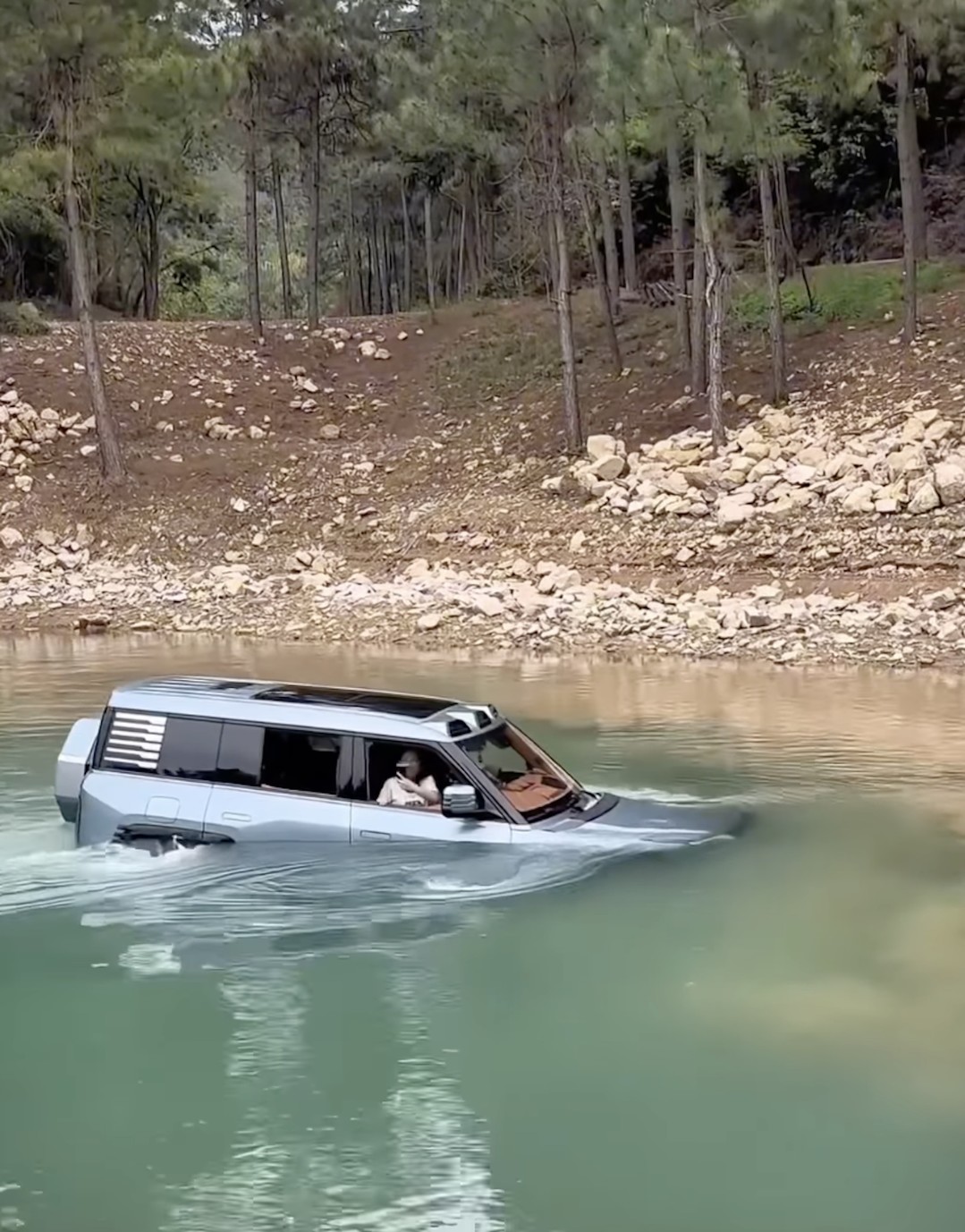 중국의 대형 SUV가 승객을 태운 채 물 위를 떠서 달리는 모습이 공개돼 궁금증을 자아낸다.